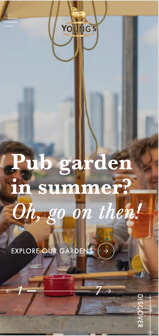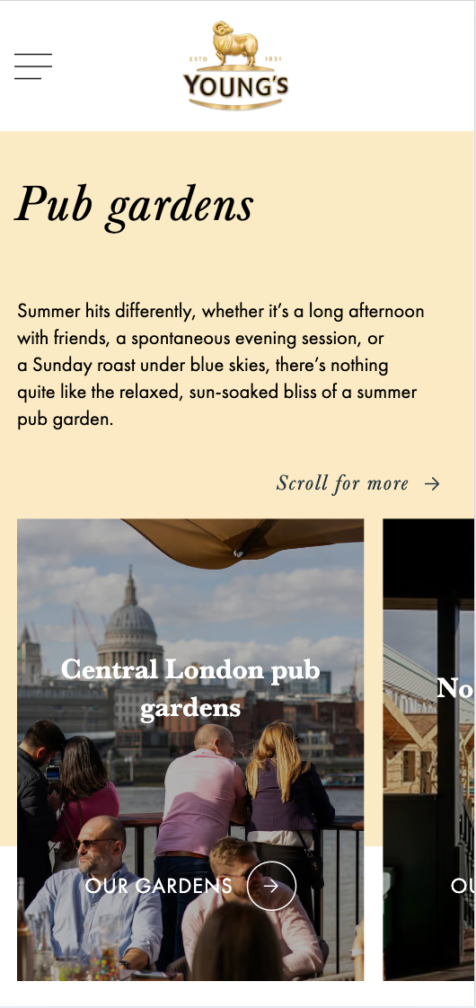 The challenge was creating a user-centric website that caters to a broad audience—ranging from London locals looking for a pub night, to travellers booking stays and job seekers exploring new opportunities. The goal was to deliver a seamless, intuitive digital experience that reflects Young’s rich heritage while embracing modern functionality.