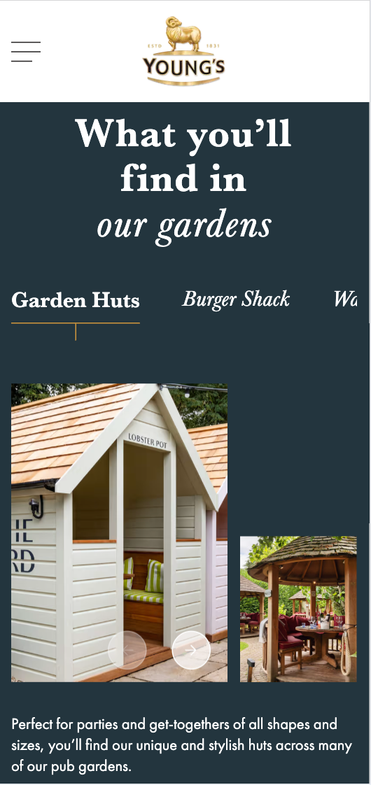 The result is a seamless blend of user-centric design and brand story-telling, meeting the diverse needs of Young’s audience. Visitors are engaging more deeply with enhanced content, easily browsing menus, planning visits, and transitioning to venue-specific sites.